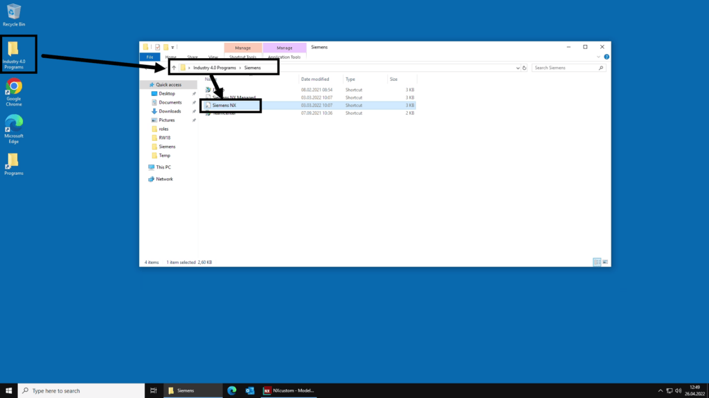 This tutorial describes how to create mechanical drawings based on a predefined NTNU template in Siemens NX. To be able to access the drawing templates, make sure you are running NX on VMWare Indsutry 4.0 VDI (desktop.ntnu.no) and starting NX from the correct shortcut as shown below. Screenshots in this tutorial are based on the NX Advanced menus setup.