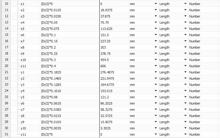 - Draw circles for R1 and R2 constrained to center point and diameter.