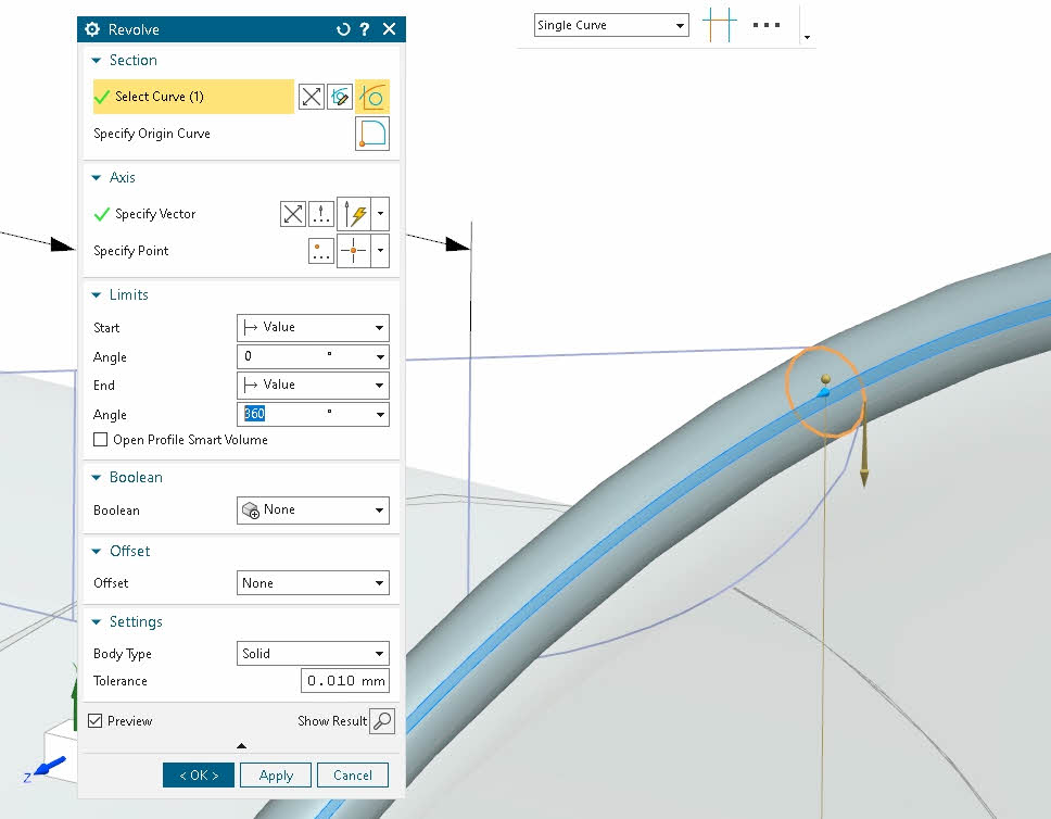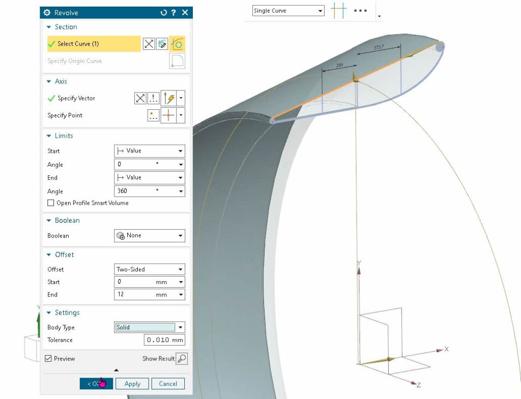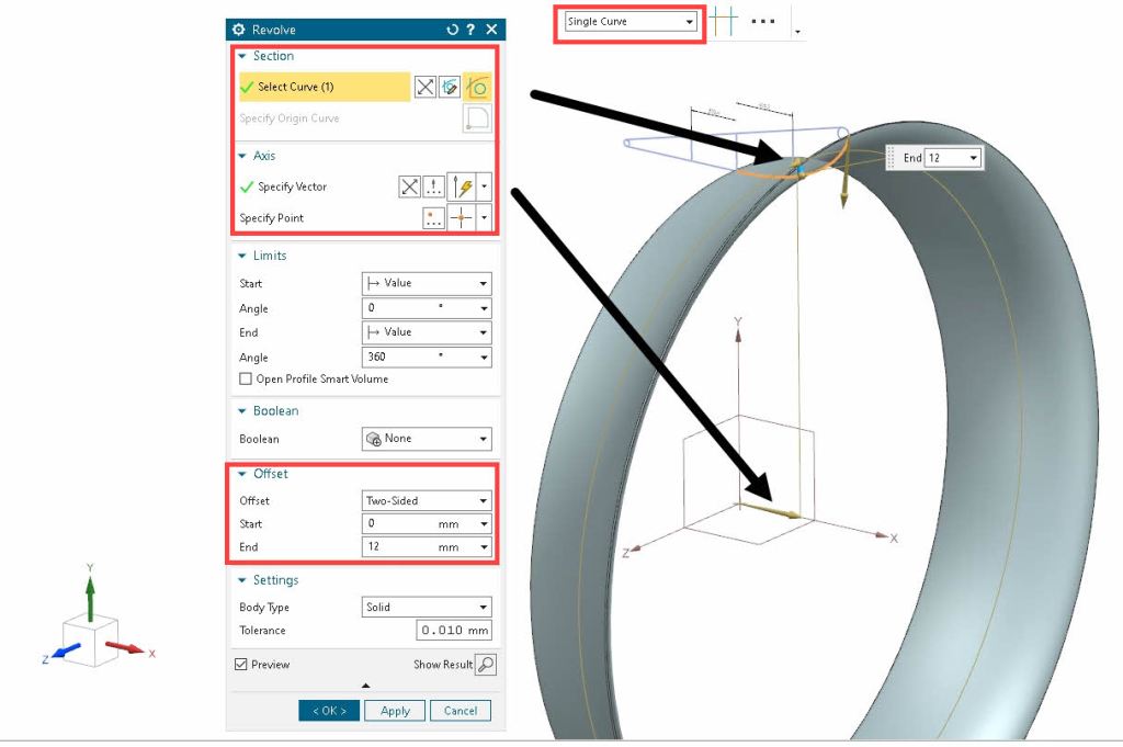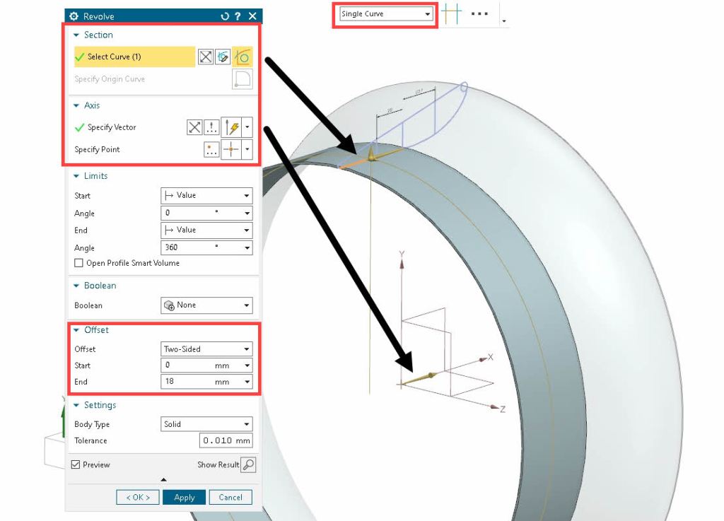 - Use revolve to create plate geometry by selecting single curve and offset to add thickness.
