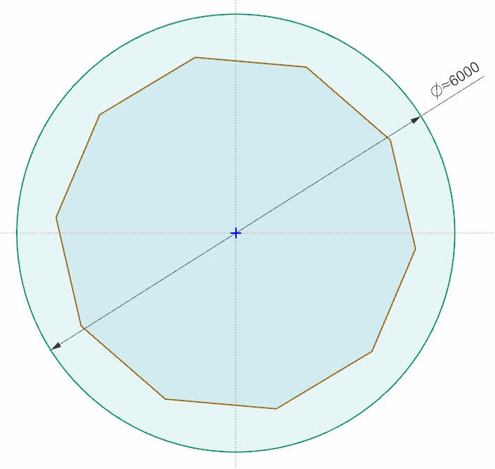 - Draw a circle with center point in [0,0] and main diameter (6000mm) – This controls the dimensions of the entire dome.