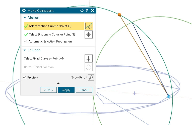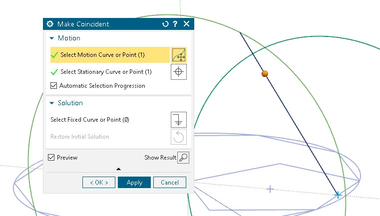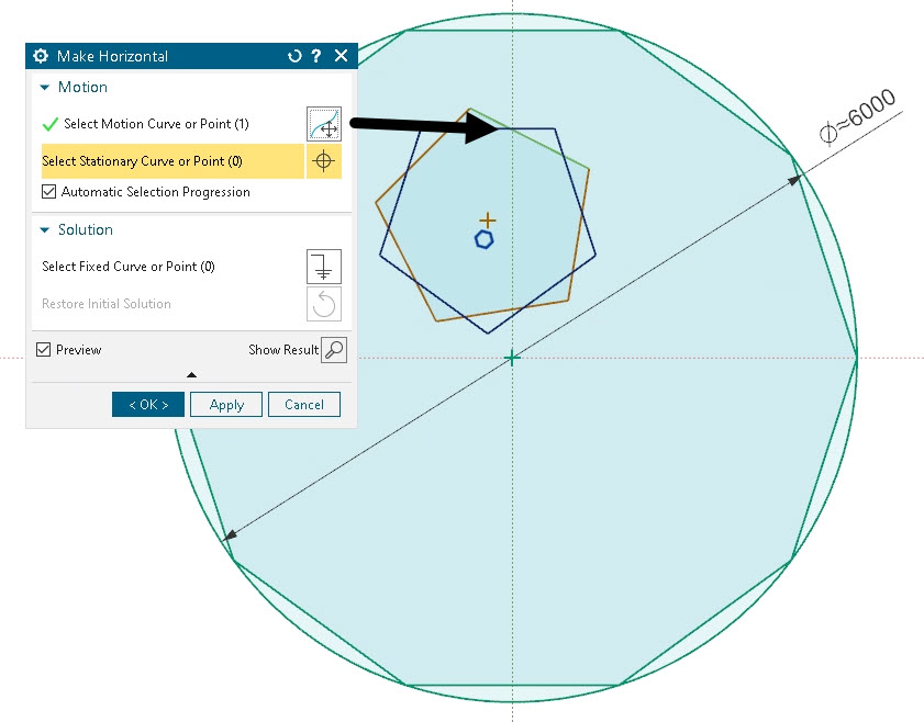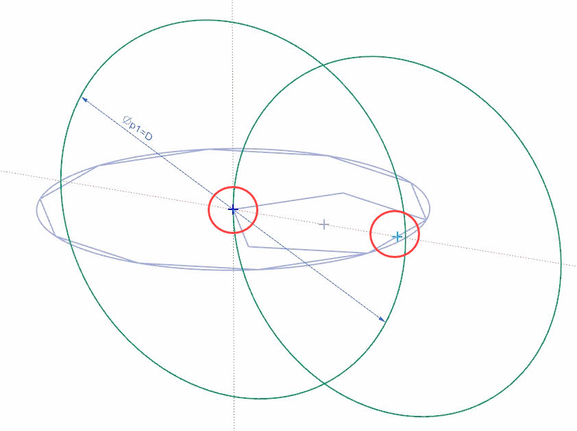- Draw circle 2 – Center point at the midpoint of small polygon as shown in picture below.. Constrain the quadrant point in origin.
