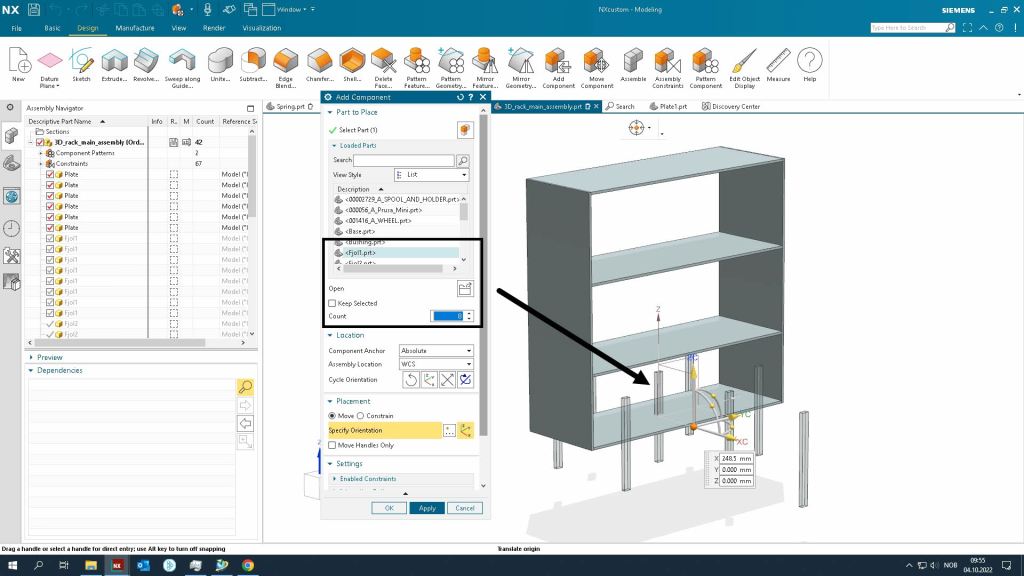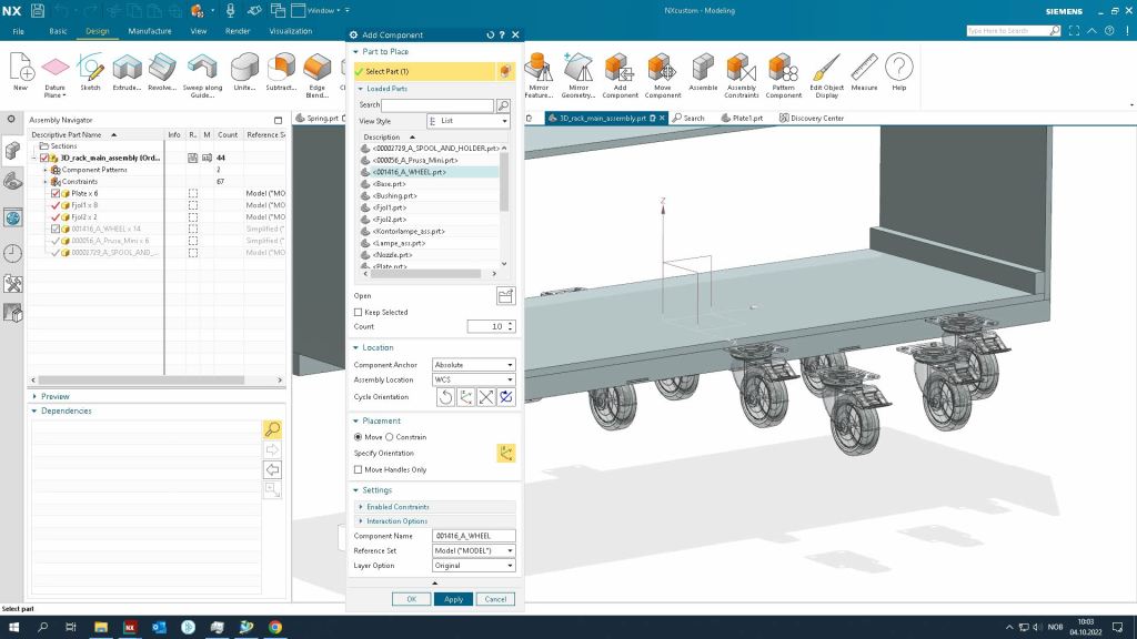 - Create a new part file in the same folder and name it 3D_printer_rack_main_assembly.prt